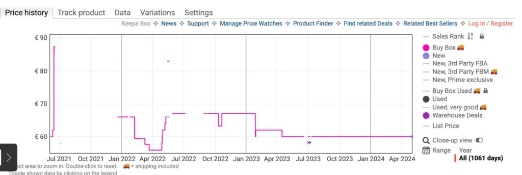 Je recommande vivement l’outil gratuit Keepa pour analyser les prix de vente. https://keepa.com/#!
